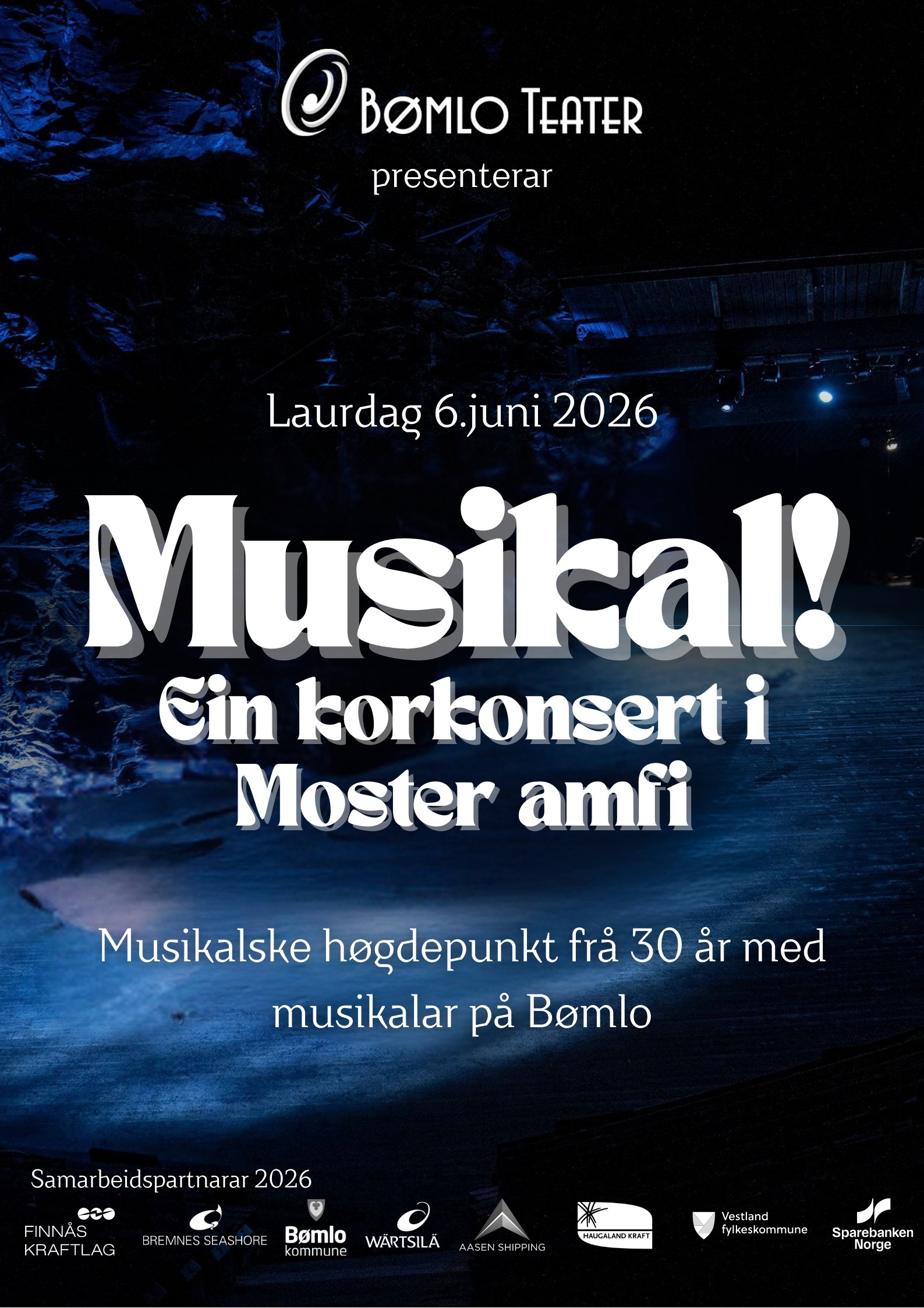 Musikal! samlar om lag 70 korsongarar på scena i Moster Amfi og tek publikum med gjennom 30 år med musikalhistorie i Bømlo Teater, med eit variert og engasjerande repertoar. Alle songane blir framførte på nynorsk og orginalspråk. Kunstnarleg ansvarleg er Runa Våge Krukhaug. Musikalsk ansvarleg er Øystein Lund Olafsen. Dette blir ein kveld fylt med songglede, musikalminne og sterke augeblikk – framført av eit stort kor i ei av dei vakraste utearenaene i Noreg.